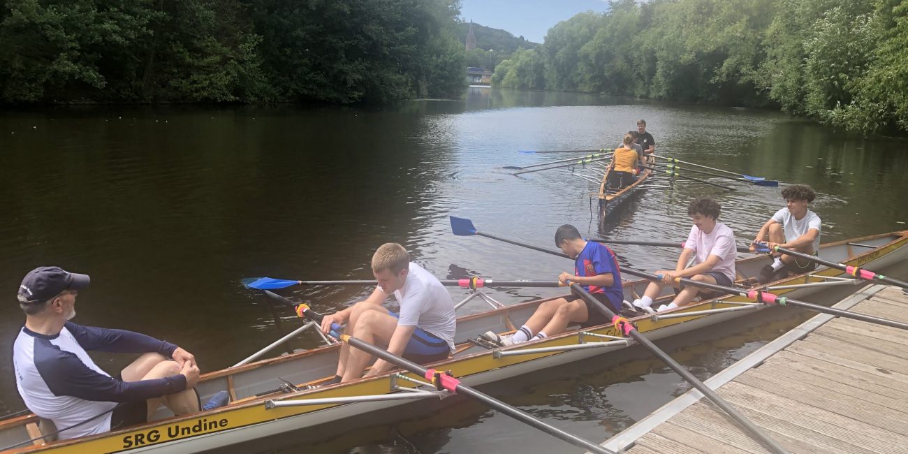 Schüler:innen der GemS Rastbachtal beim ersten Rudertraining auf der Saar
