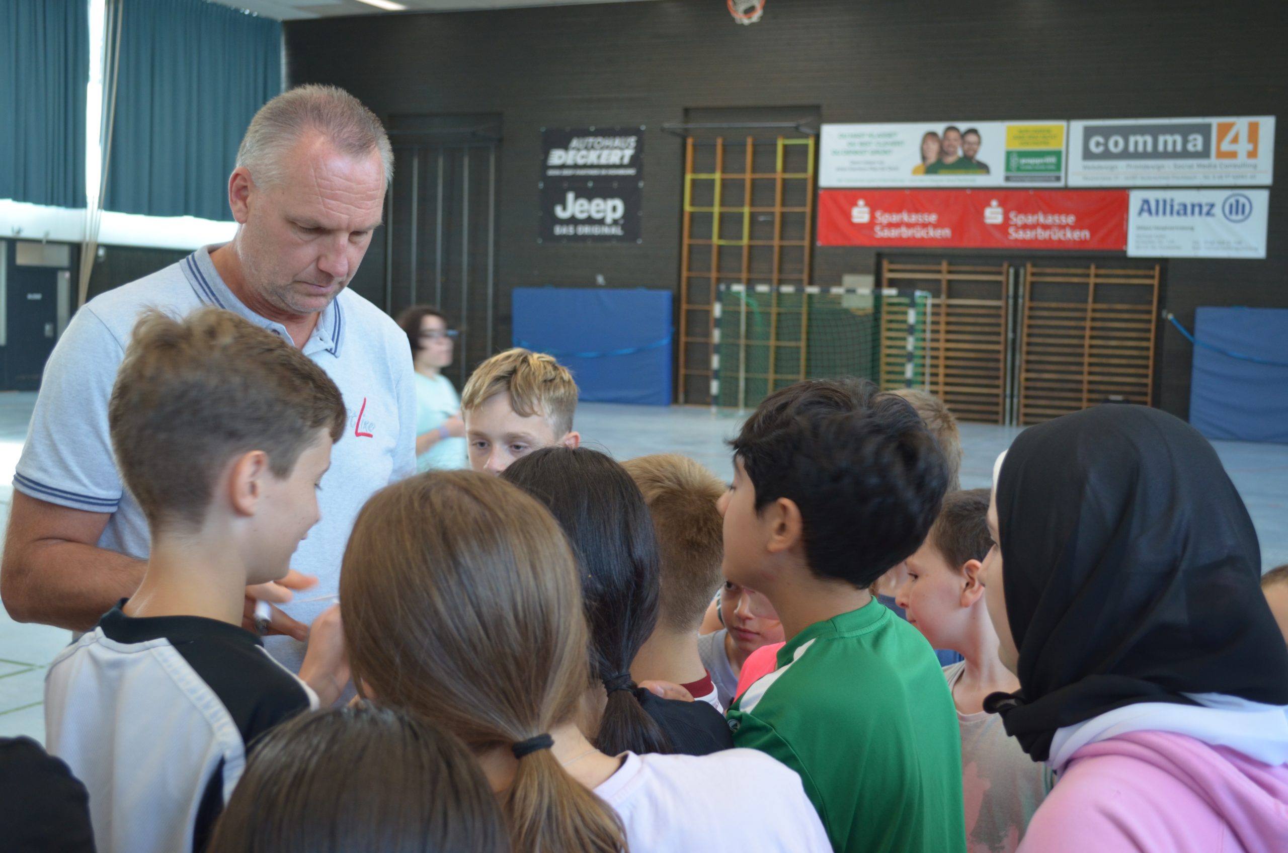 Kein geringerer als Christian „Blacky“ Schwarzer unterstützte die 60 Kinder der Gemeinschaftsschule Dudweiler bei ihren Trainingseinheiten im Sportzentrum Dudweiler, erzählte von seinen Erlebnissen als Nationalspieler, beantwortete die zahlreichen Fragen und verteilte natürlich Autogramme an die Kids.
