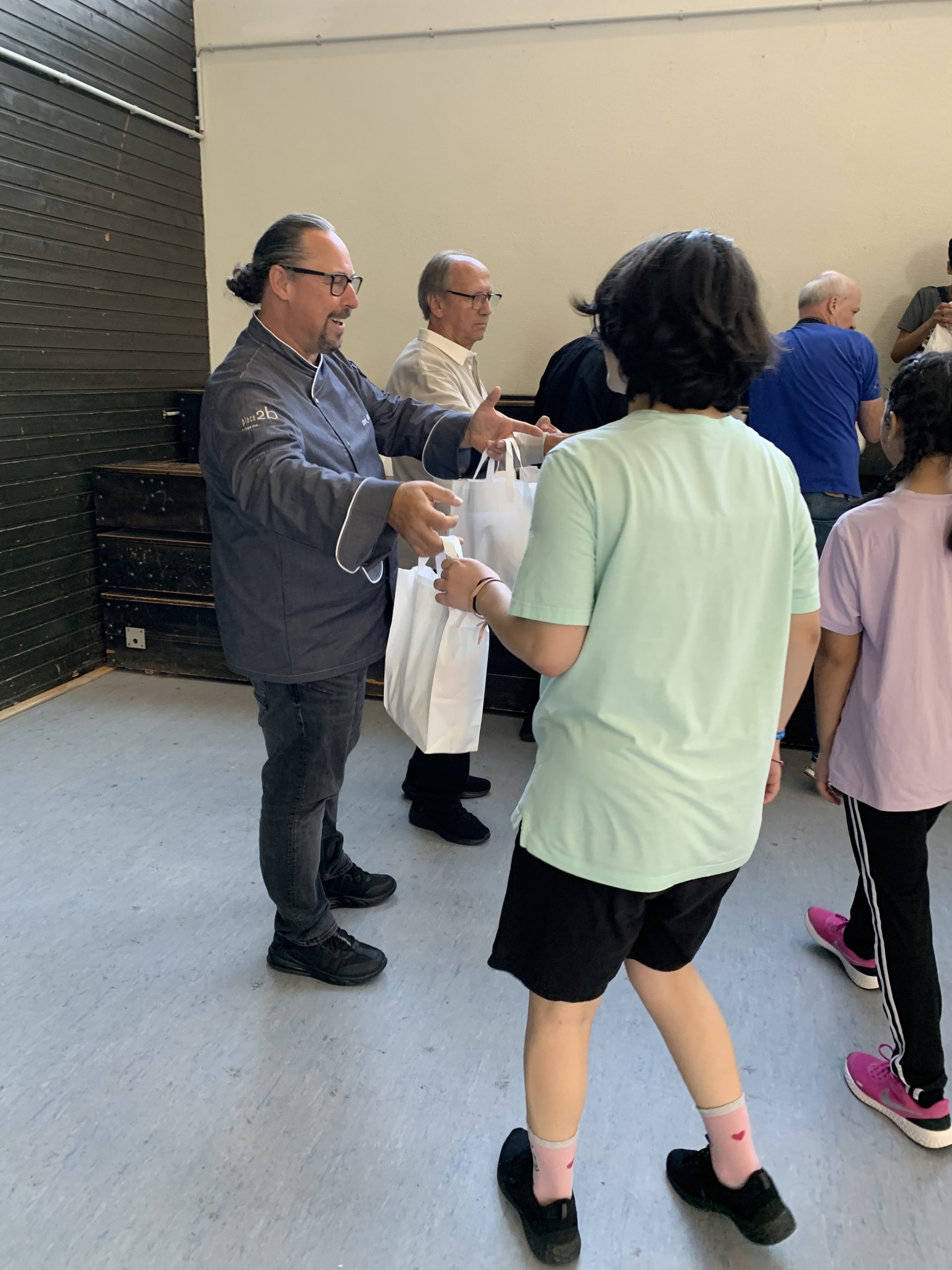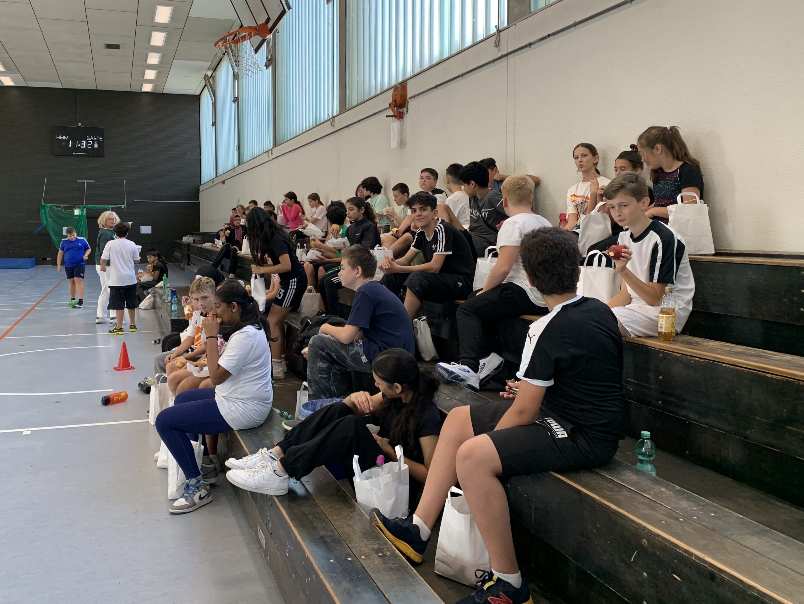 Nach anstrengenden, schweißtreibenden 2 Stunden gab es in der Mittagspause zur Stärkung leckere Lunchpakete, gesponsert von der Place2b GmbH, die deren Vertreter Herr Böck und Herr Scheidt an die Schüler*innen verteilten.
